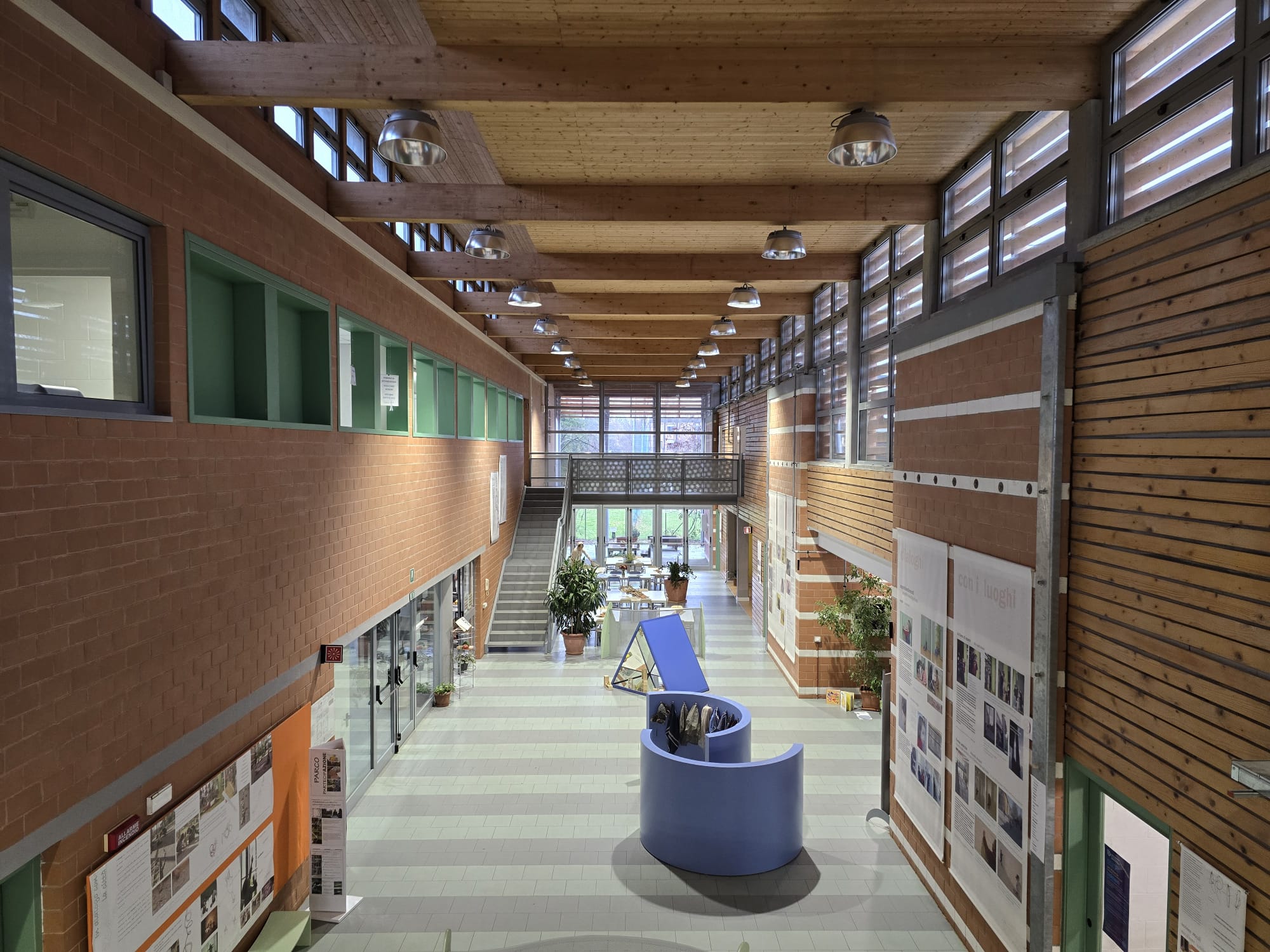 Per migliorare il comfort termico e la classe energetica dell’intero edificio, è stata effettuata la sostituzione dell’impianto di climatizzazione, realizzata la coibentazione delle coperture piane degli uffici e della aule destinate ai piccoli fruitori del fabbricato e sono stati installati pannelli fotovoltaici in copertura. Si è proceduto al ripristino delle impermeabilizzazioni e alla sostituzione parziale dei serramenti, in particolare quelli presenti nei locali uffici, servizi e quelli al primo piano che danno luce alla piazza centrale di ambo i lati. Sono inoltre stati sostituiti i frangisole esterni di tutte le finestre ed è stata effettuata la levigatura del parquet nelle sezioni.