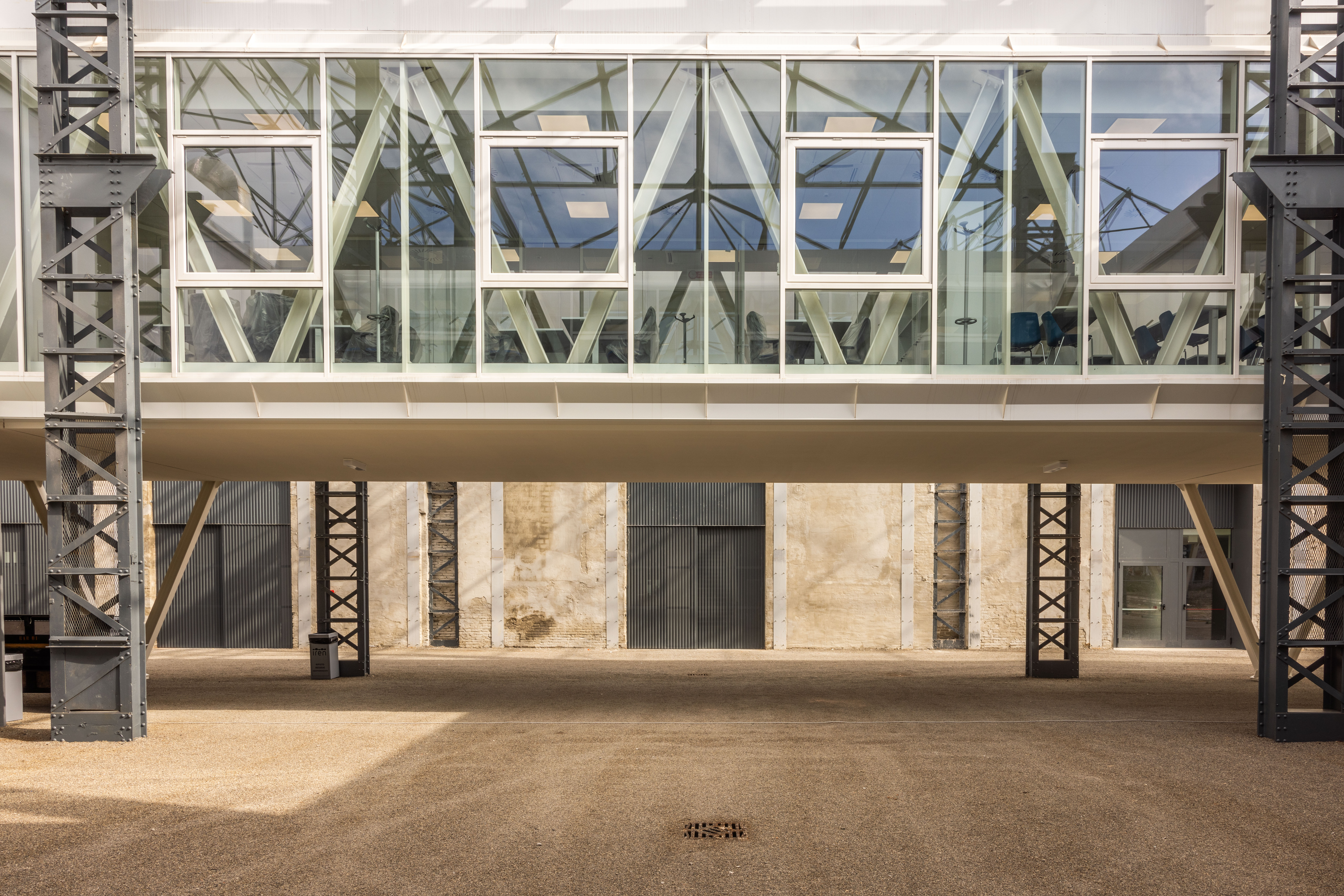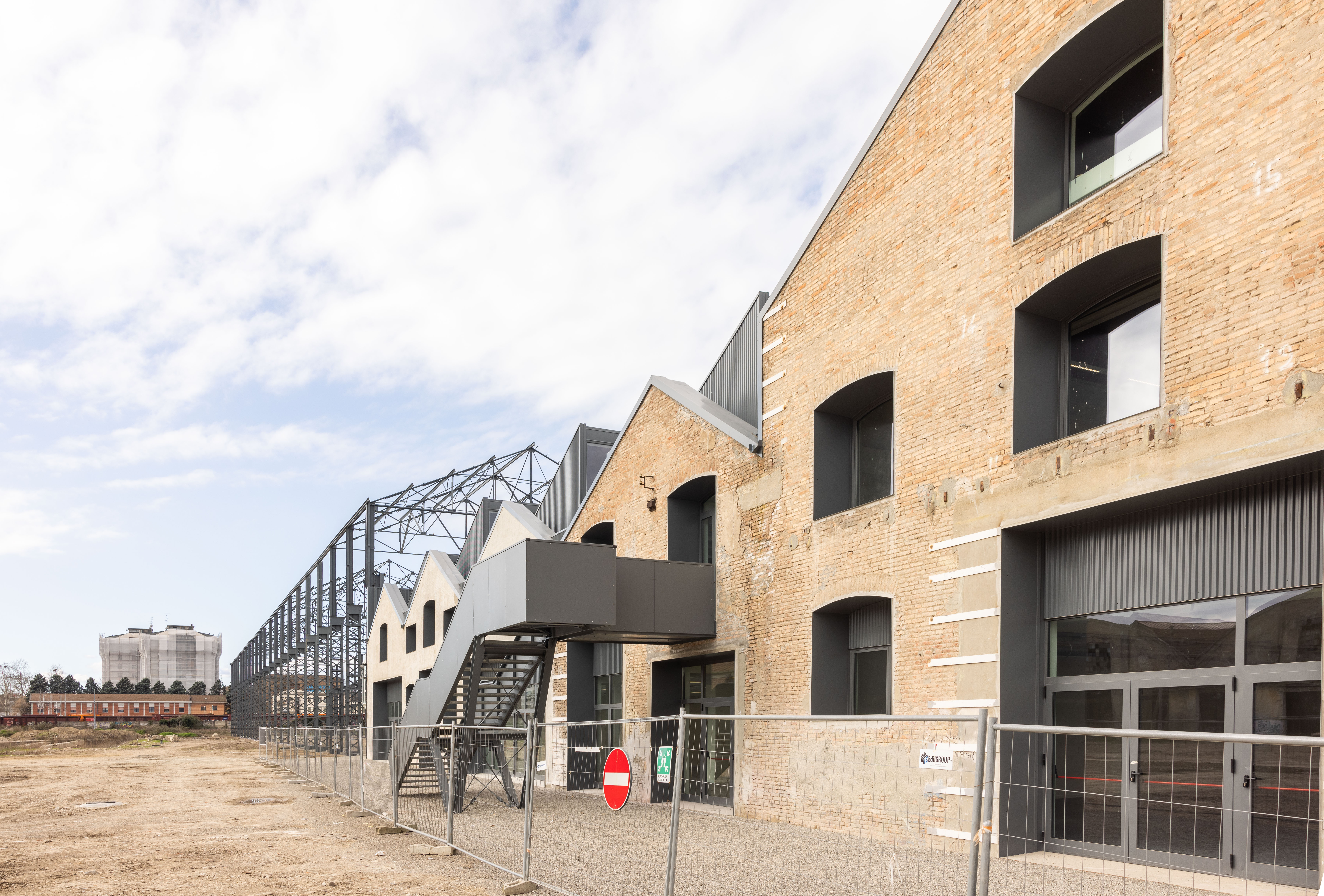 Le murature sono state demolite per lasciare a nudo la copertura con la struttura portante costituita dalle colonne metalliche, travi e travetti sempre in metallo. Al di sotto è stato costruito un nuovo immobile sopraelevato ispirato alla struttura delle gru carroponte presenti nelle storiche Officine Reggiane.