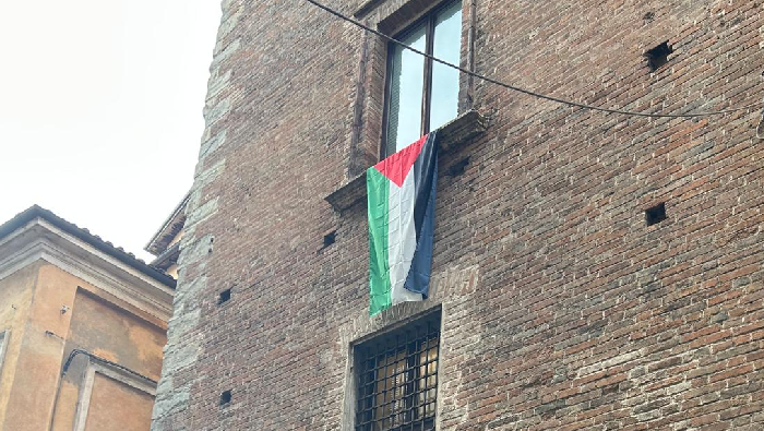 La bandiera della Palestina cambia collocazione e si sposta su una finestra al secondo piano della torre del Bordello, affacciata su via Toschi ma visibile anche da Piazza Prampolini. Lo ha deciso il sindaco di Reggio Emilia, Marco Massari, d'accordo con tutta la giunta, che ha voluto in questo modo tenere conto delle osservazioni pervenute nei giorni scorsi dalla Prefettura.