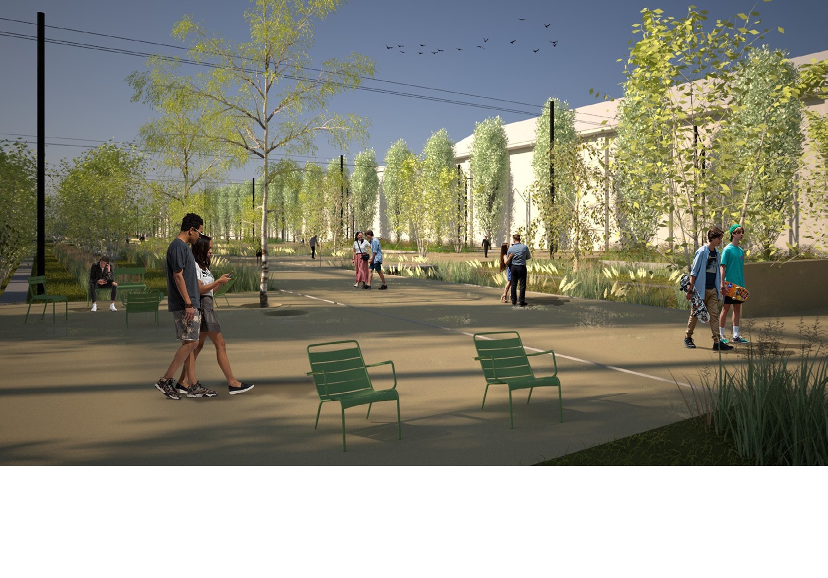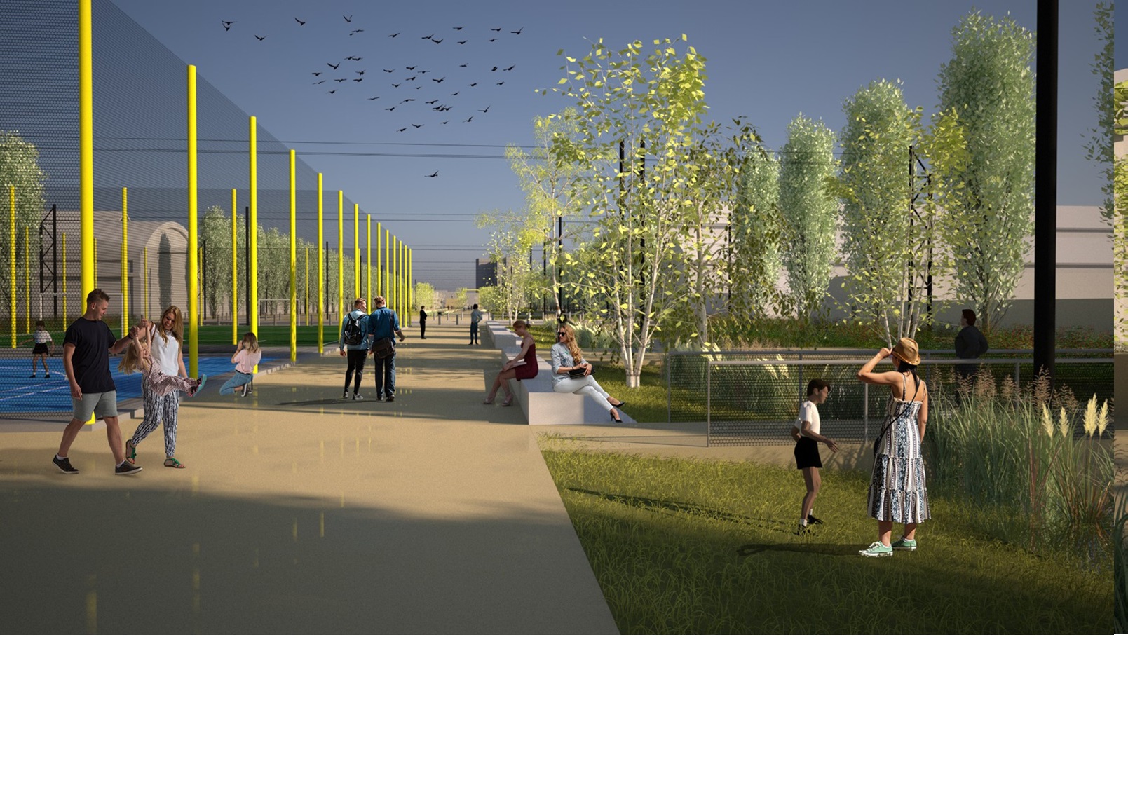La nuova struttura pubblica, infatti, sarà un’area a destinazione pubblica e polifunzionale, costituita da un parco “lineare” con relativi servizi e dotazioni e da una rete connettiva di strade, ciclabili e percorsi pedonali per la mobilità pubblica e privata. Per quanto attiene il sistema integrato del verde, il progetto prevede nel complesso la realizzazione di un parco di oltre tre ettari ad alta differenziazione ecologica che integrerà diversi tipi di alberature, specie arbustive e prati stabili, impianti e sistemi per la circolarità e il recupero delle acque piovane, andando ad incidere positivamente sulle emissioni di sostanze climalteranti. Il progetto prevede inoltre la realizzazione di servizi, intesi come aree e attrezzature pubbliche per lo sport, la cultura e il tempo libero.
