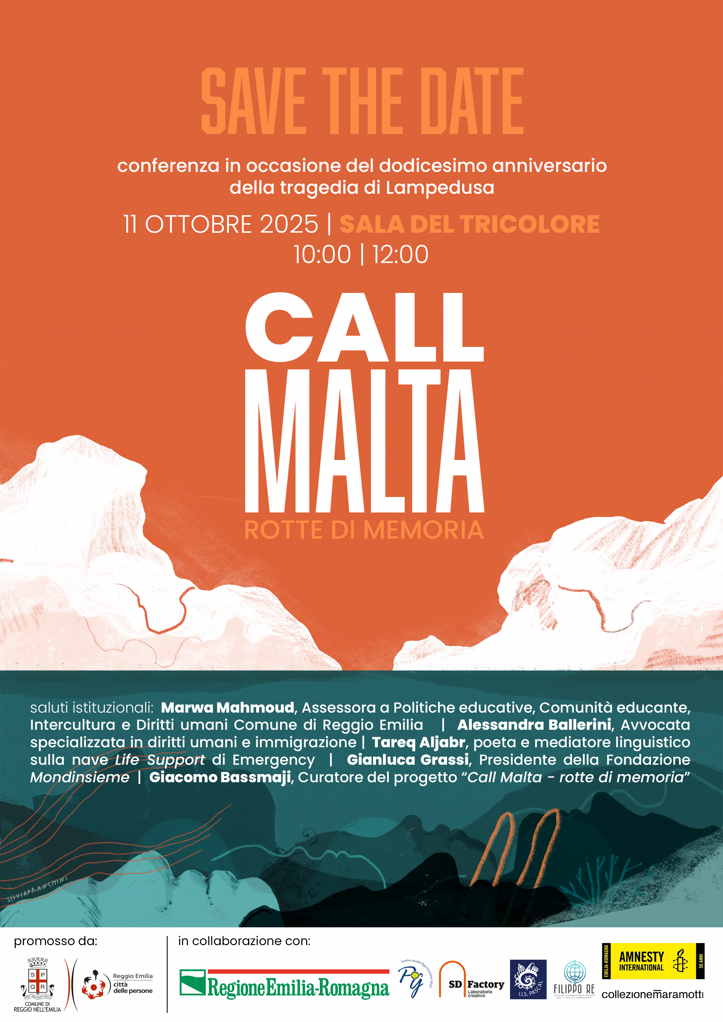Call Malta è un progetto ideato e coordinato da Giacomo Bassmaji con il Comune di Reggio Emilia, in collaborazione con SD Factory, Amnesty International, Collezione Maramotti, Cooperativa Papa Giovanni XXIII, Iis Blaise Pascal e Ipssc Filippo Re. Il progetto, cofinanziato dalla Regione Emilia Romagna, è appunto tra i vincitori del bando regionale “Pace 2025” e si è classificato tra i primi su oltre 70 proposte pervenute.