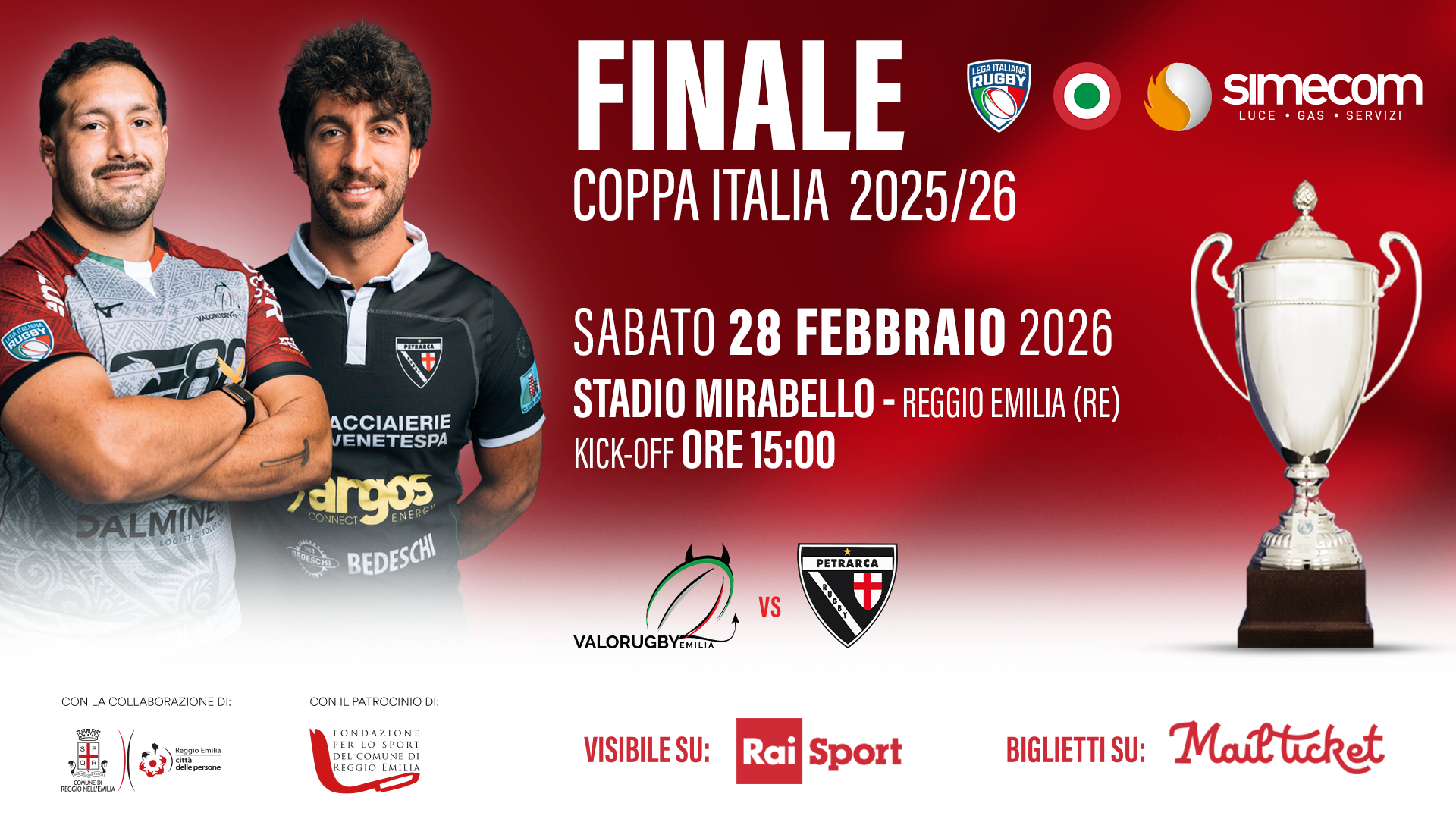 La scelta di Reggio Emilia come sede per la finale di Coppa Italia 2025/26 si inserisce nel solco dei festeggiamenti per gli ottant’anni del rugby nella nostra città ed è anche l’ulteriore conferma dell’importanza acquisita da Reggio Emilia nell’ambito del rugby italiano. Un riconoscimento che segue di poche settimane la consegna del cap celebrativo al club avvenuta lo scorso 6 febbraio allo Stadio Olimpico di Roma.