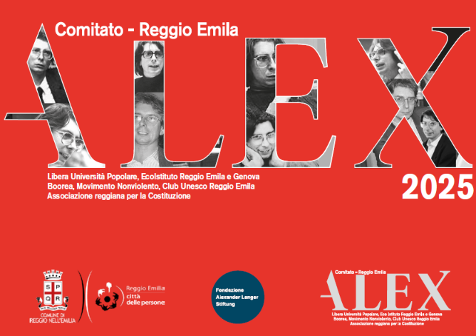 - Il Bando “Alex: Continuate in ciò che è giusto” (di imminente pubblicazione) rivolto alla popolazione studentesca per stimolare nelle giovani generazioni idee e proposte progettuali sui temi dell’ecologia, di pace-nonviolenza e del dialogo tra diversi.