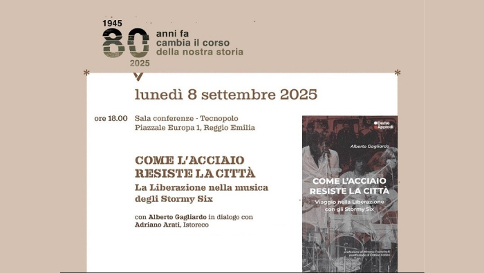 In occasione dell’ottantesimo anniversario della Liberazione, lunedì 8 settembre 2025 alle 18 nella Sala conferenze del Tecnopolo in piazzale Europa 1 a Reggio Emilia, si terrà l’incontro “Come l’acciaio resiste in città. La Liberazione nella musica degli Stormy Six”.