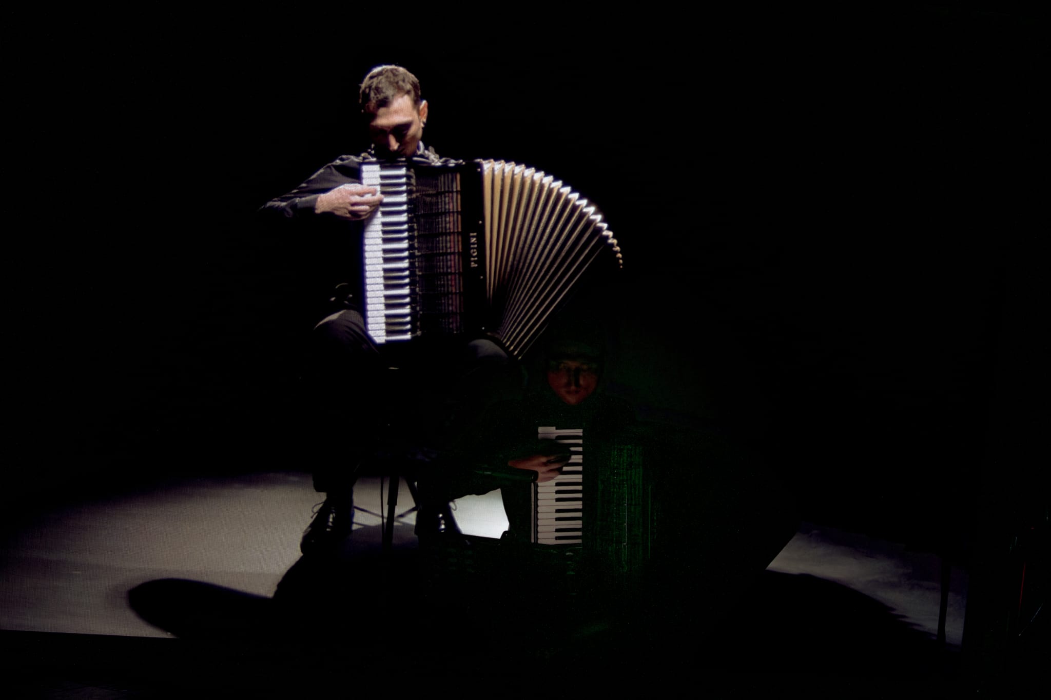 Gravitational Waves è una performance ideata dal fisarmonicista Raffaele Damen e dal compositore elettronico Roberto Zanata. La fisarmonica diventa laboratorio acustico, capace di evocare attraverso i battimenti dei registri e i movimenti del mantice il comportamento del laser che misura le impercettibili variazioni dello spazio-tempo. L’elettronica e le elaborazioni video amplificano questa suggestione, trasformando le interferenze in paesaggi audiovisivi immersivi, dove la materia vibra e si dilata come un corpo celeste. L’opera prende spunto dalle onde gravitazionali, traducendo in suono e immagine i dati dell’interferometro Virgo e i fenomeni celesti da esso rilevati. Al cuore dell’opera ciò che nella scienza è considerato errore qui diventa rivelazione, apertura verso un linguaggio sensoriale in cui la distorsione si trasforma in poesia. Gravitational Waves è un’esperienza percettiva e visionaria, capace di restituire al pubblico la vertigine di un universo in perenne trasformazione.