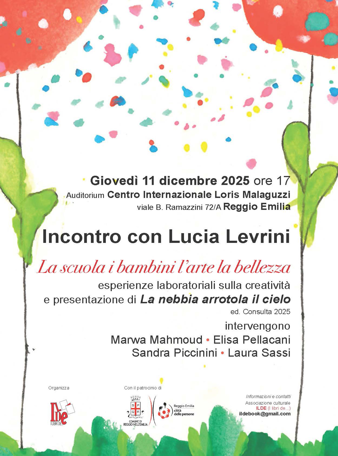 “Riconoscere ai bambini il linguaggio dell’arte è poter vedere, attraverso le loro opere, il respiro del mondo. Scorgere nei segni, nei colori, nelle parole i racconti invisibili che ogni bambino ha dentro di sé è un compito che non possiamo delegare ad altri. Perché, ancora prima di noi, i bambini sanno raccontare la bellezza e la poesia”: con questa parole Lucia Levrini, una vita nell’insegnamento tra i bambini e le bambine delle scuole di Reggio e provincia, racconta con estrema sintesi la motivazione che l’ha portata alla stesura di un volume (edito da Consulta librieprogetti) e di un primo incontro, che si terrà presso il Centro Malaguzzi, giovedì 11 dicembre, alle ore 17