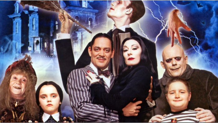 Insieme a loro vivono anche lo zio Fester, Nonna, il gigantesco domestico Lurch, Mano - letteralmente una mano che ha vita propria - e Cugino It, ricoperto da capelli foltissimi.