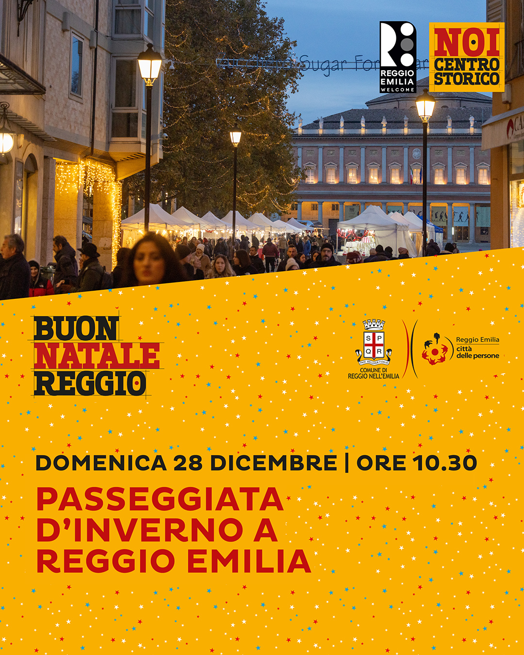 Una piacevole passeggiata d’inverno alla scoperta del centro storico di Reggio Emilia, immerso nell’atmosfera natalizia.