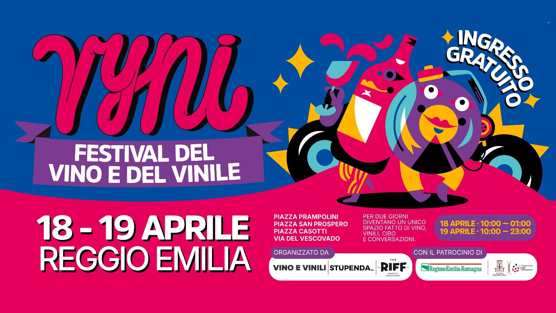 Il 18 e 19 Aprile 2026 il centro storico di Reggio Emilia torna a farsi sentire: suoni, incontri, scoperte e cin-cin che rimbalzano tra le piazze.