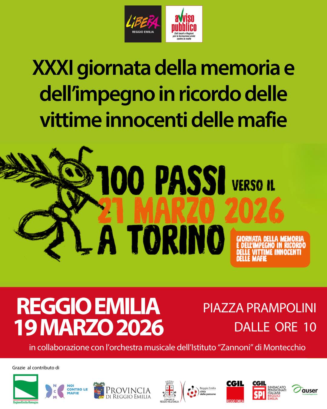 Momento di impegno collettivo insieme a scuole, istituzioni, associazioni, cittadine e cittadini, accompagnati dalla musica dell'orchestra dell'Istituto Zannoni di Montecchio.